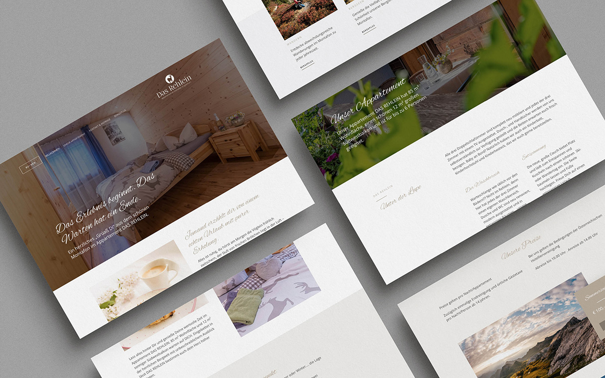 Das Projekt Webseite „das Rehlein“ ist eine Neugestaltung einer ursprünglich selbst gestalteten Webseite für eine Ferienwohnung in Gaschurn. Zusätzlich durfte ich noch aus einem selbstgestalteten Logo ein neues Logo zaubern. Dieses wurde aus vorhandenen Elementen vereinfacht, optimiert und komplett neu zusammengestellt.