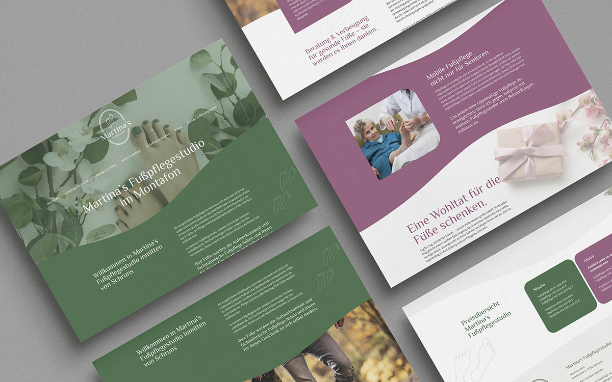Mit dem neuen Branding für Martina’s Fußpflege in Schruns haben wir eine klare und einheitliche Linie geschaffen, welche positiv und einladend nach Außen wirkt.