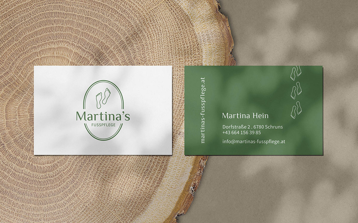 Mit dem Branding für Martina’s Fußpflege in Schruns entstand ein ganz neuer Auftritt, welcher mit quer Beet und selbstgemacht aufräumte. Das alte Logo dessen Aussage weit weg von einer Fußpflege stand, wandelte sich zu einem Auftritt welcher die Arbeit von Martina optisch unterstreicht und unterstützt.